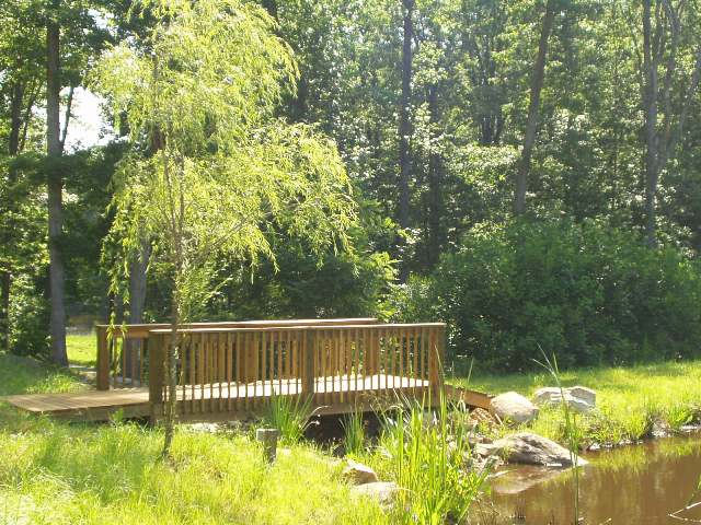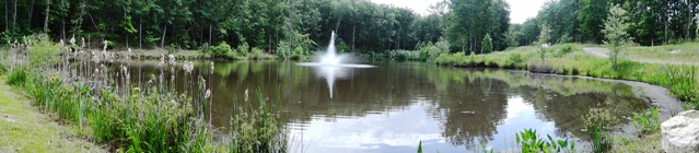 Tranquility Lakes has two large ponds, one with an aerator, and three smaller ponds. An asphalt walking trail circles through the woods, around the ponds and wetlands, and past a footbridge over the spillway. Fishing pods are available at the upper pond.
